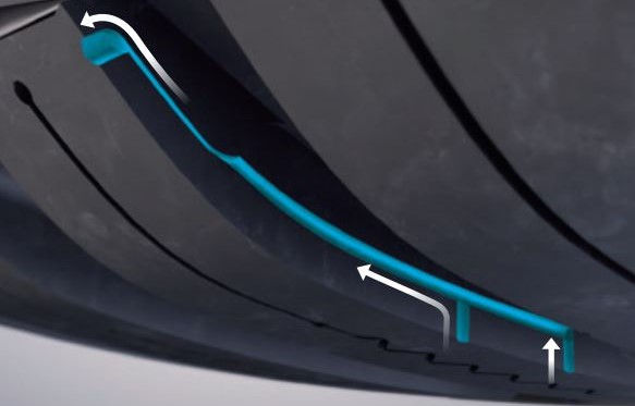 Ces rainures innovantes permettent d'améliorer les performancees d'adhérence sur sol mouillé grâce à un drainage de l'humidité de la surface du sol.